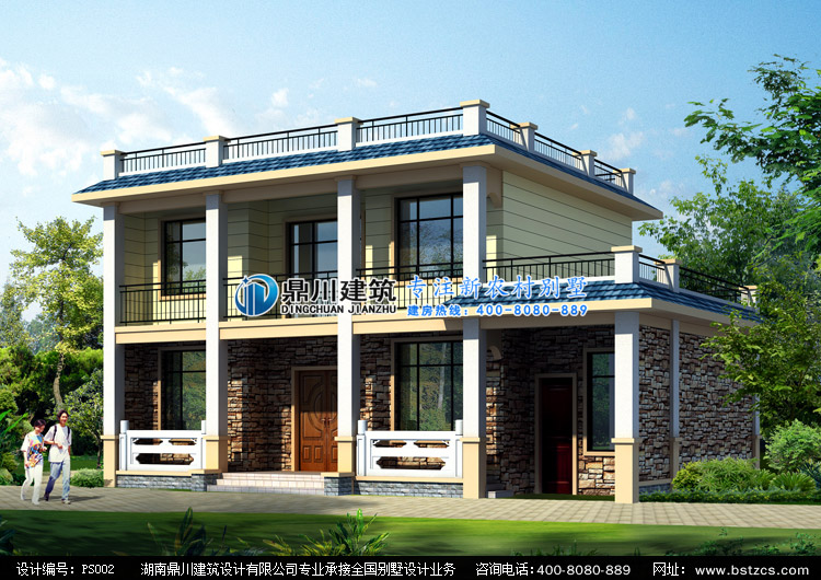 PS002二層平屋頂農(nóng)村自建房屋設(shè)計圖效果圖,鼎川建筑農(nóng)村二層小別墅設(shè)計圖紙效果圖