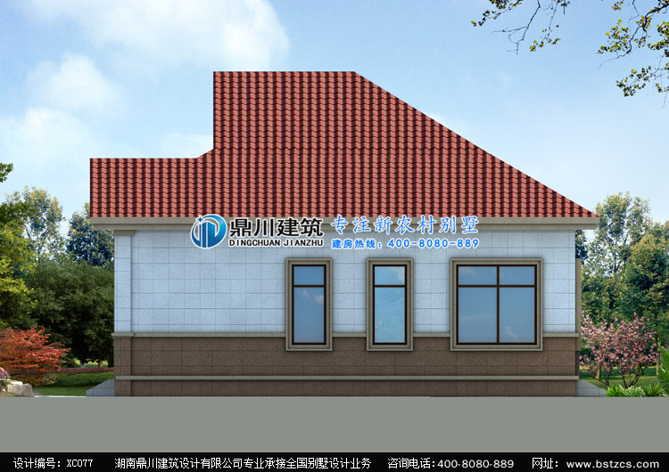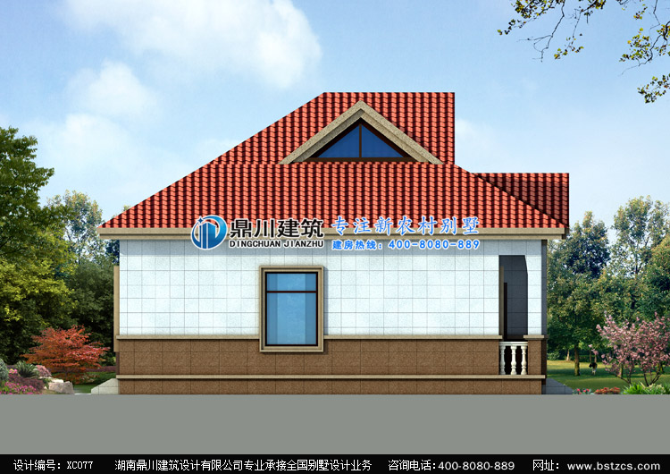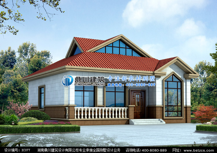 XC077漂亮的一層帶閣樓自建小別墅圖紙效果圖,鼎川建筑一層自建房屋設(shè)計(jì)圖外觀