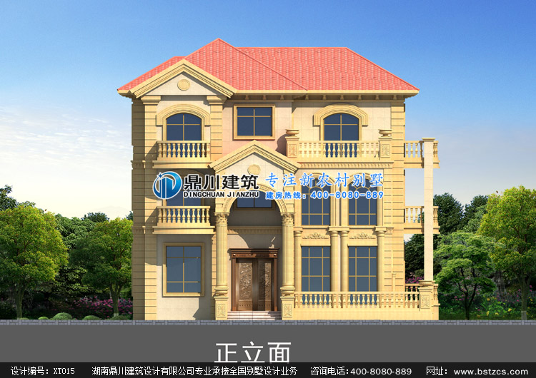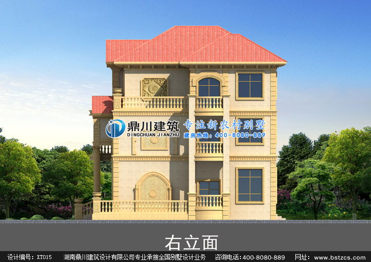XT015三層帶露臺(tái)歐式別墅設(shè)計(jì)圖紙外觀效果圖,三層歐式別墅私人定制設(shè)計(jì)
