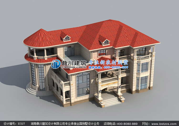 XC027大氣三層歐式別墅設(shè)計(jì)圖紙外觀效果圖,三層歐式別墅私人定制設(shè)計(jì)圖紙效果圖