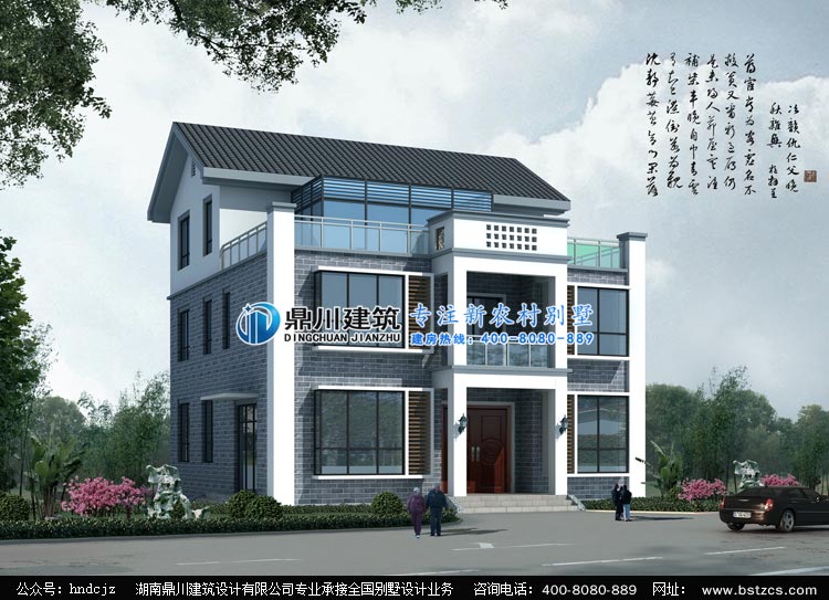 當(dāng)前位置: 首頁 > 設(shè)計案例 > ZH004新中式三層帶露臺別墅圖紙設(shè)計外觀效果圖,鼎川建筑中式別墅設(shè)計
