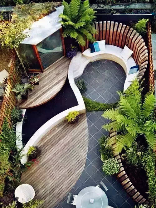 你可能會擔(dān)心自家的院子太小沒法好好打造,沒事,既然空間不大,我們就盡可能簡化所有可能的裝飾,也不考慮其它的使用功能了,就把它打造成一個大花園。在地面的處理上,根據(jù)自己的喜好來選擇是地磚還是草皮。喜歡素雅點的,就擺些漂亮的花花草草,簡單又好看。喜歡熱鬧一點的話,我們可選擇色彩繽紛的花朵,旁邊的土壤里還能種些高大些的花。