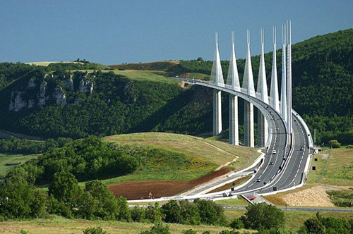 米洛大橋位于法國南部,法國政府花了巨大的人力物力才建成了橫跨塔恩河的這座斜拉索公路橋。它最高的混凝土橋塔高達800英尺(約244米),比當?shù)卮蠖鄶?shù)建筑樓都高。據(jù)測量,從河面到塔頂?shù)母叨葹?120英尺(約241米)。