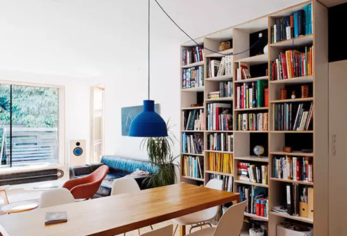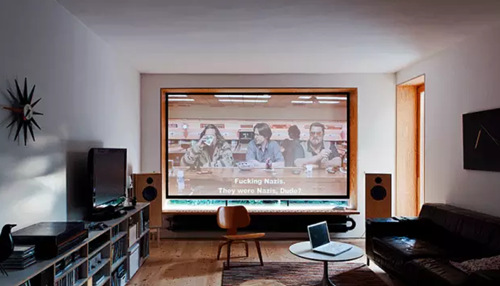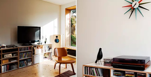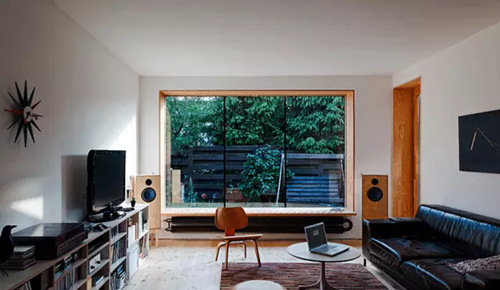 將客廳的窗口挖深,變成小型的飄窗座位;同時這個窗口上方還藏了個投影機的螢?zāi)?,隨時變身家庭電影院,很贊吧。