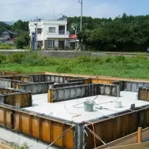 ▼在基礎下部澆注素混凝土條形墊層后,回填碎石墊層,并進行壓實整平處理。