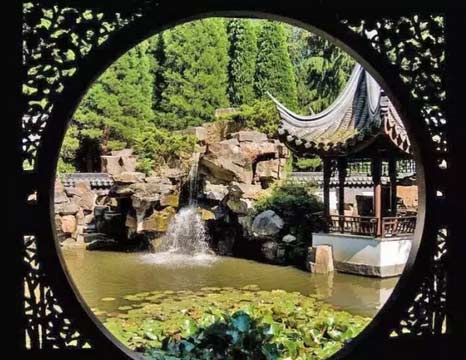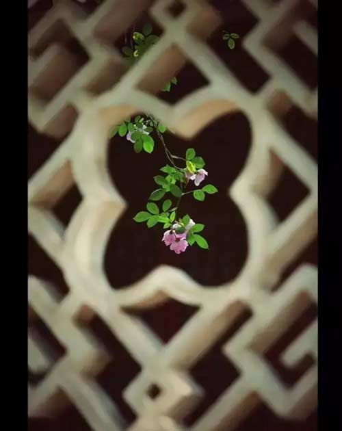 一扇月拱門,抬腳跨過(guò)天圓地方,一扇雕花窗, 窗外花正放。