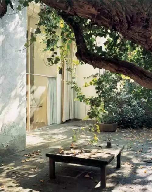 院中擺放一個(gè)藤椅,午后的陽(yáng)光下藤椅小坐,愜意生活大致如此。