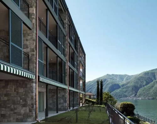 意大利萊澤諾199萬人民幣:科莫湖畔一室公寓,湖泊邊景觀房、室內(nèi)裝飾是天然石材和木材。