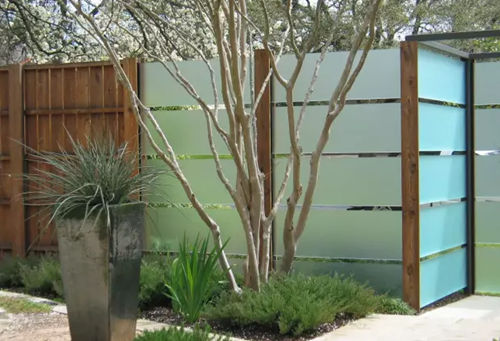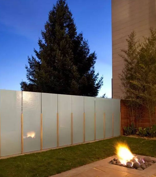 玻璃圍墻。玻璃透光的特點,讓圍墻有了更多互動的可能,不論是人影、樹影、光影,都能與其產(chǎn)生有趣的互動,以玻璃為幕布,做一個生動的圍墻。
