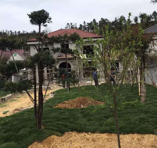 這時(shí)候外墻已經(jīng)刷了一層了,從這個(gè)角度看過(guò)去,門前的院子還挺大的。業(yè)主還圍了花圃,種了綠植??梢韵胂?,等房子、院子都做好后,絕對(duì)很漂亮。