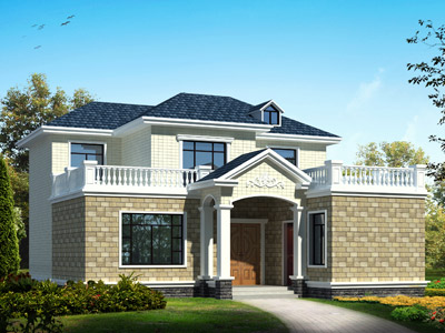 J0178歐式二層帶露臺(tái)農(nóng)村別墅外觀效果圖,鼎川建筑二層歐式