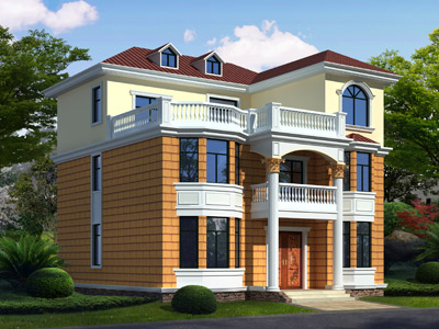 HY048三層帶露臺(tái)小別墅效果圖,鼎川建筑農(nóng)村三層自建房屋設(shè)