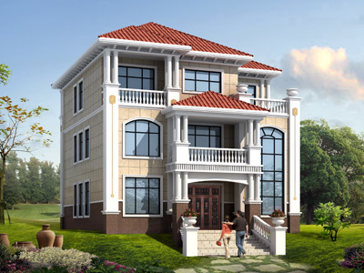L0269三層帶露臺(tái)歐式別墅設(shè)計(jì)外觀效果圖,農(nóng)村歐式自建別墅