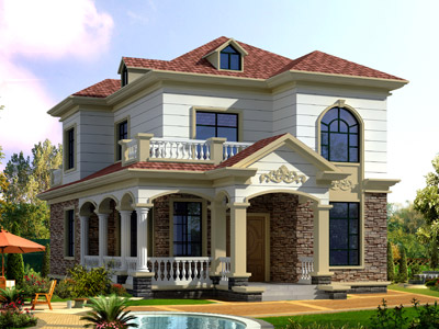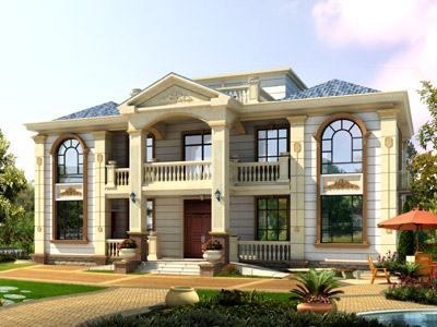 D0248漂亮的二層帶露臺(tái)歐式別墅外觀效果圖,鼎川建筑歐式別