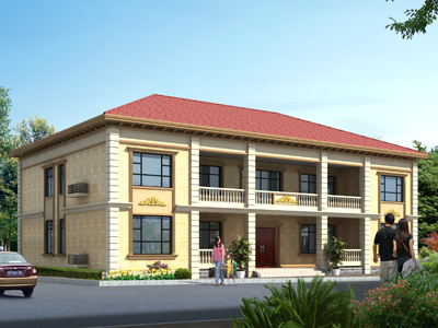 HC120兩層歐式雙拼別墅設(shè)計(jì)圖紙外觀效果圖,農(nóng)村二層雙拼自