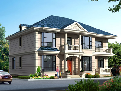 JL113新農(nóng)村二層自建房屋設(shè)計圖外觀效果圖,鄉(xiāng)村兩層別墅私