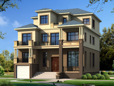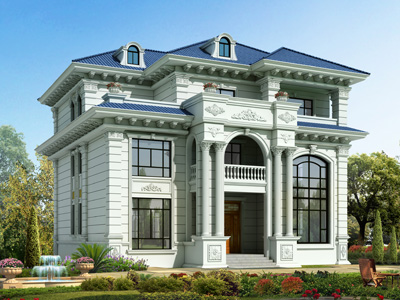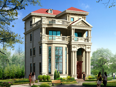 JL089大氣的三層歐式別墅圖紙設(shè)計外觀效果圖,鼎川三層別墅
