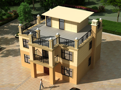 XC0120三層帶露臺農(nóng)村自建別墅圖紙外觀效果圖,鼎川建筑三