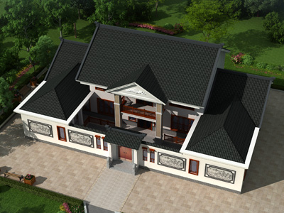 LX056二層中式三合院自建房屋設(shè)計圖紙外觀效果圖,鼎川建筑