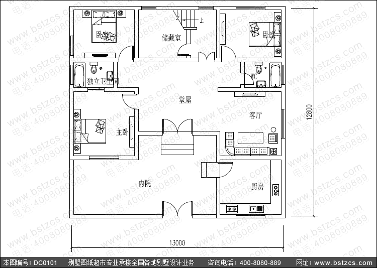 開間: 13米 進(jìn)深: 12.8米 占地面積: 172.65平方米 建筑面積: 250.95平方米