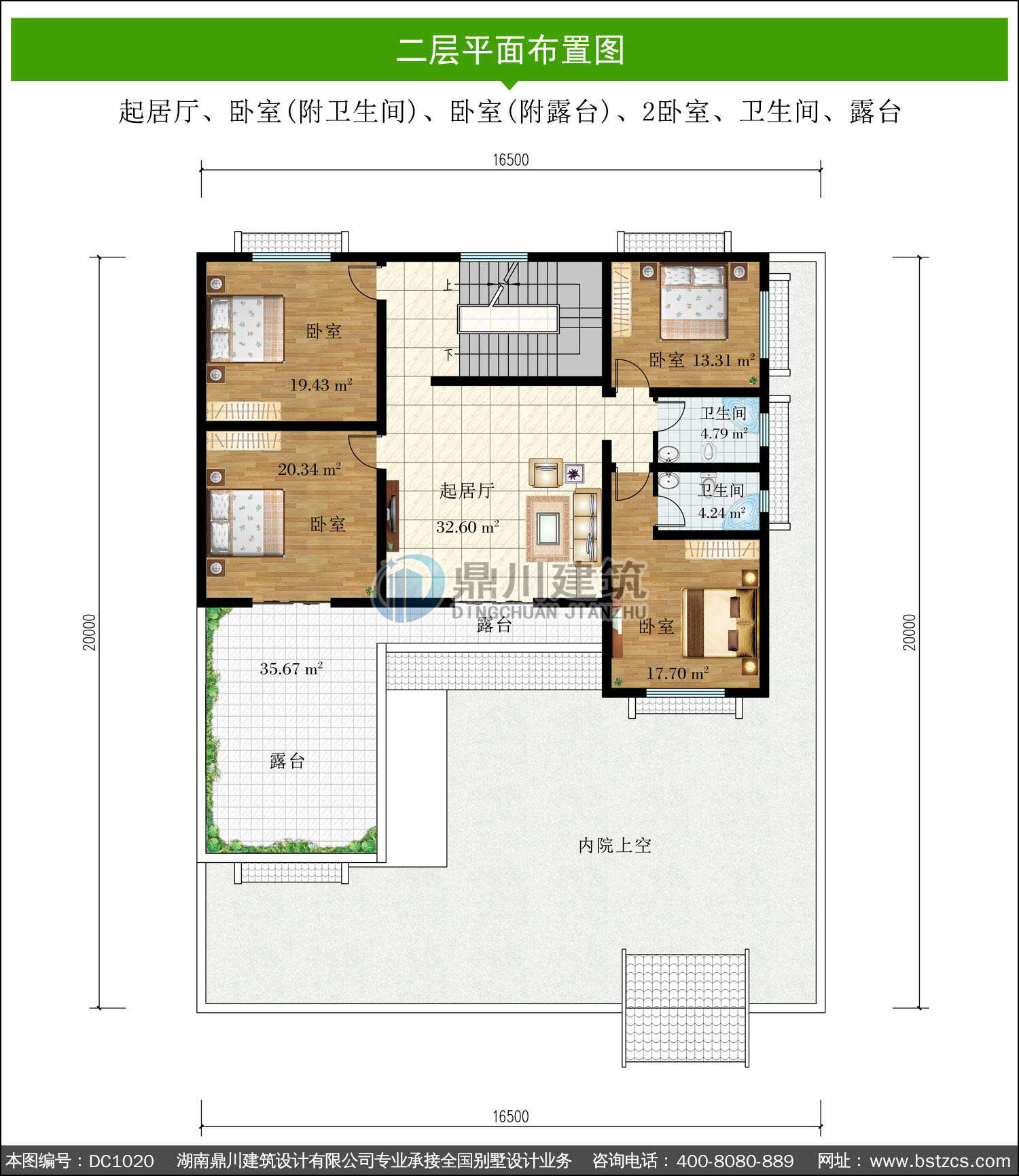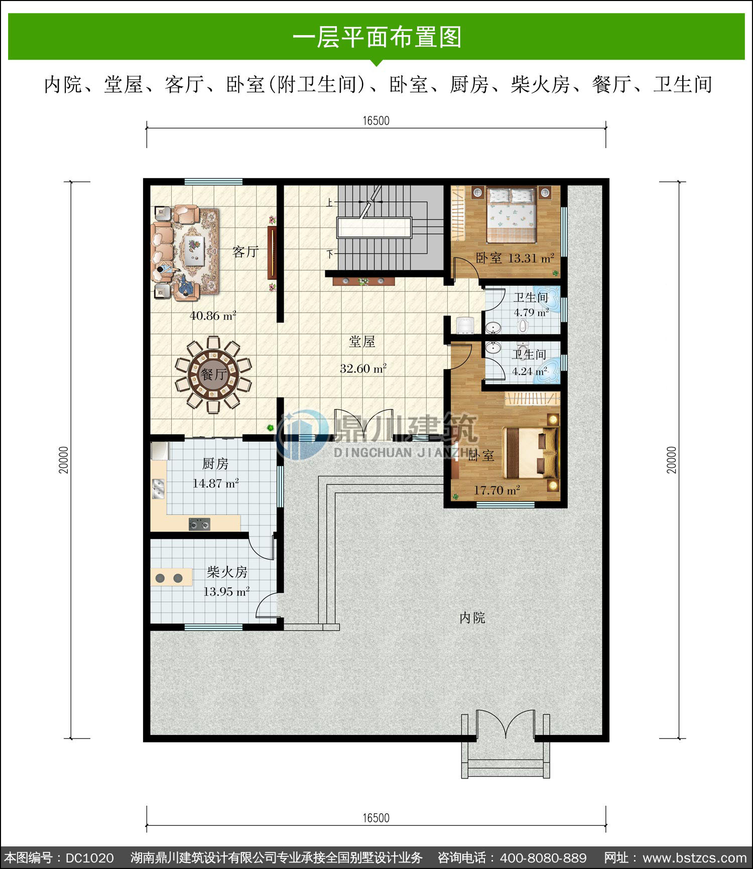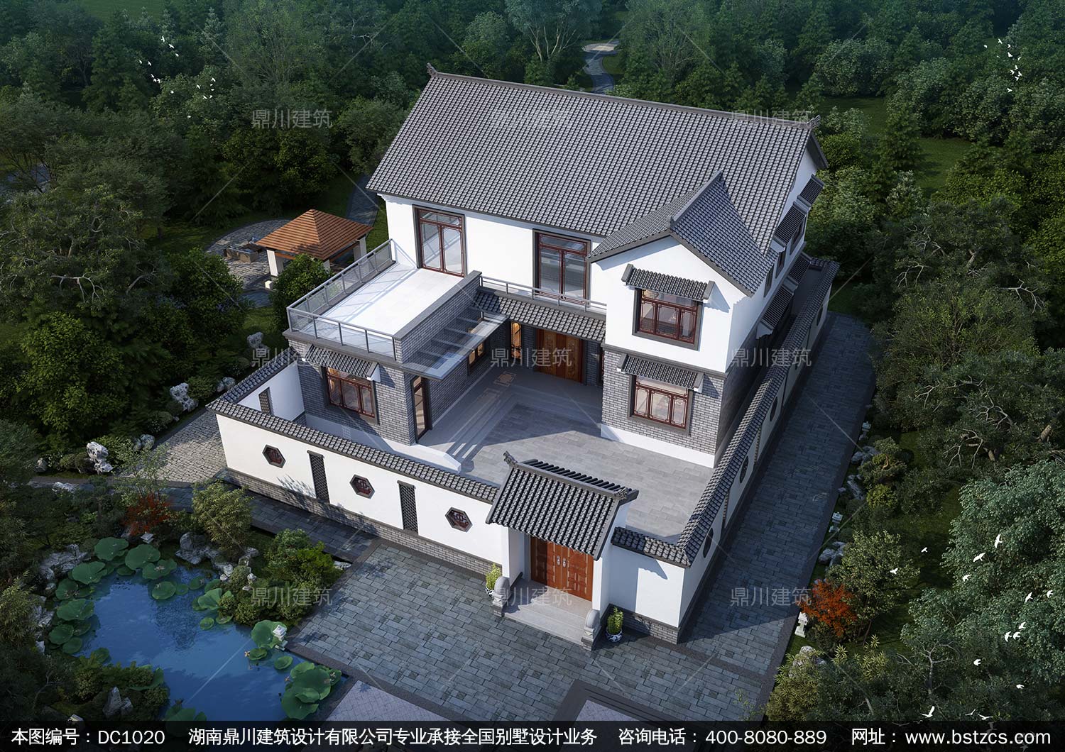 中式二層帶內(nèi)院別墅施工圖紙及效果圖_農(nóng)村自建別墅設(shè)計,鼎川建筑