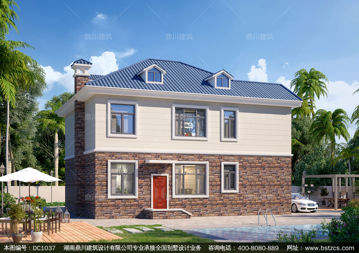 二層簡歐帶走廊別墅施工圖紙及效果圖_農(nóng)村自建別墅設(shè)計(jì),鼎川建筑