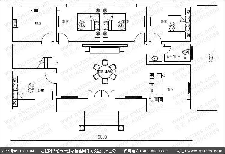 一 層: 堂屋(兼餐廳)、客廳、4臥室、廚房、衛(wèi)生間