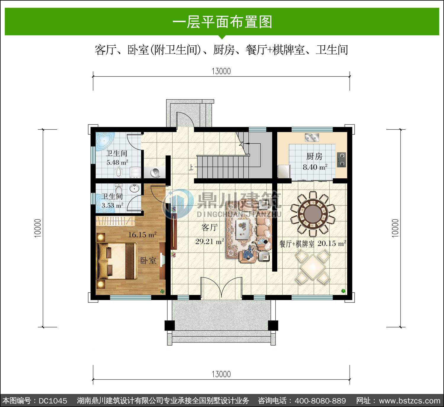 | 開(kāi)間: 13米 | 進(jìn)深: 10米 | 占地面積: 124.34平方米 | 建筑面積: 275.91平方米 |