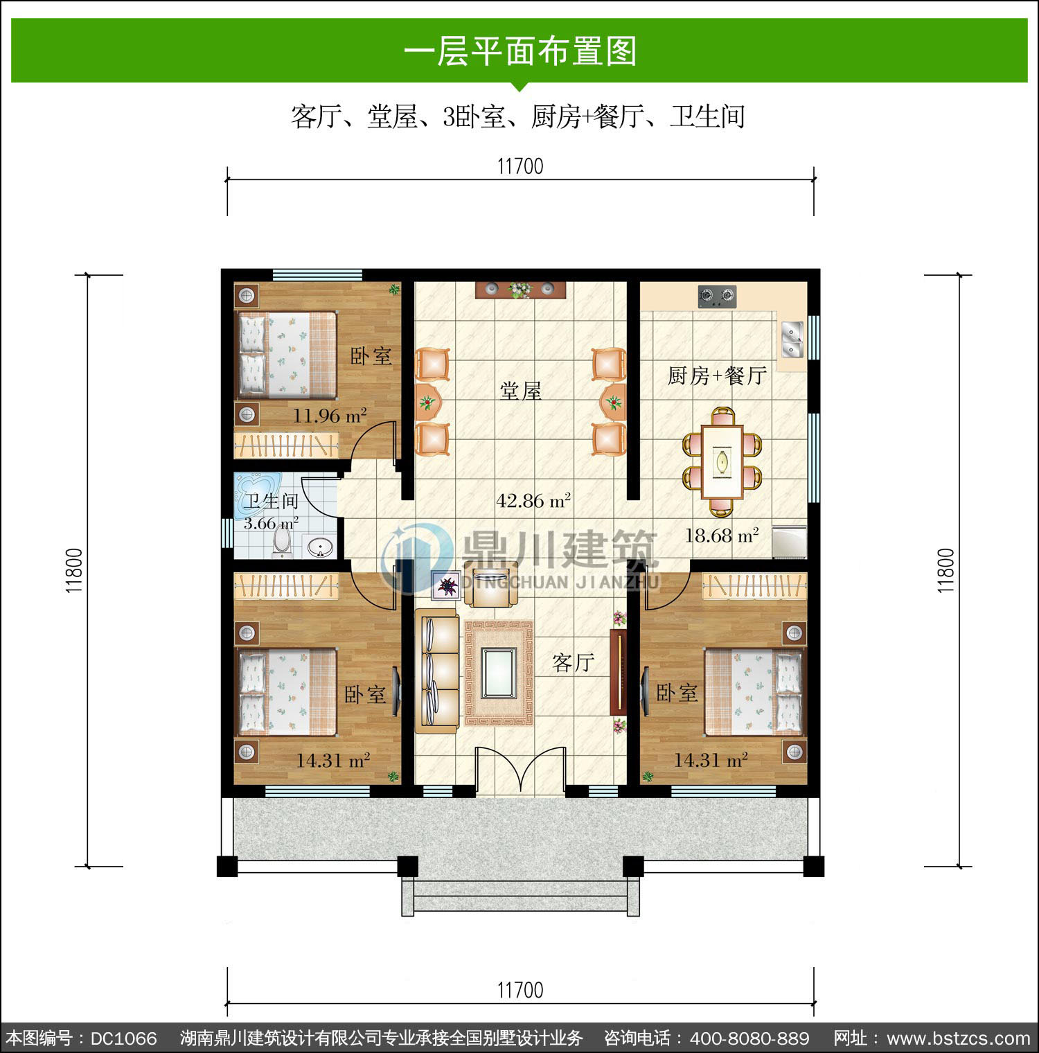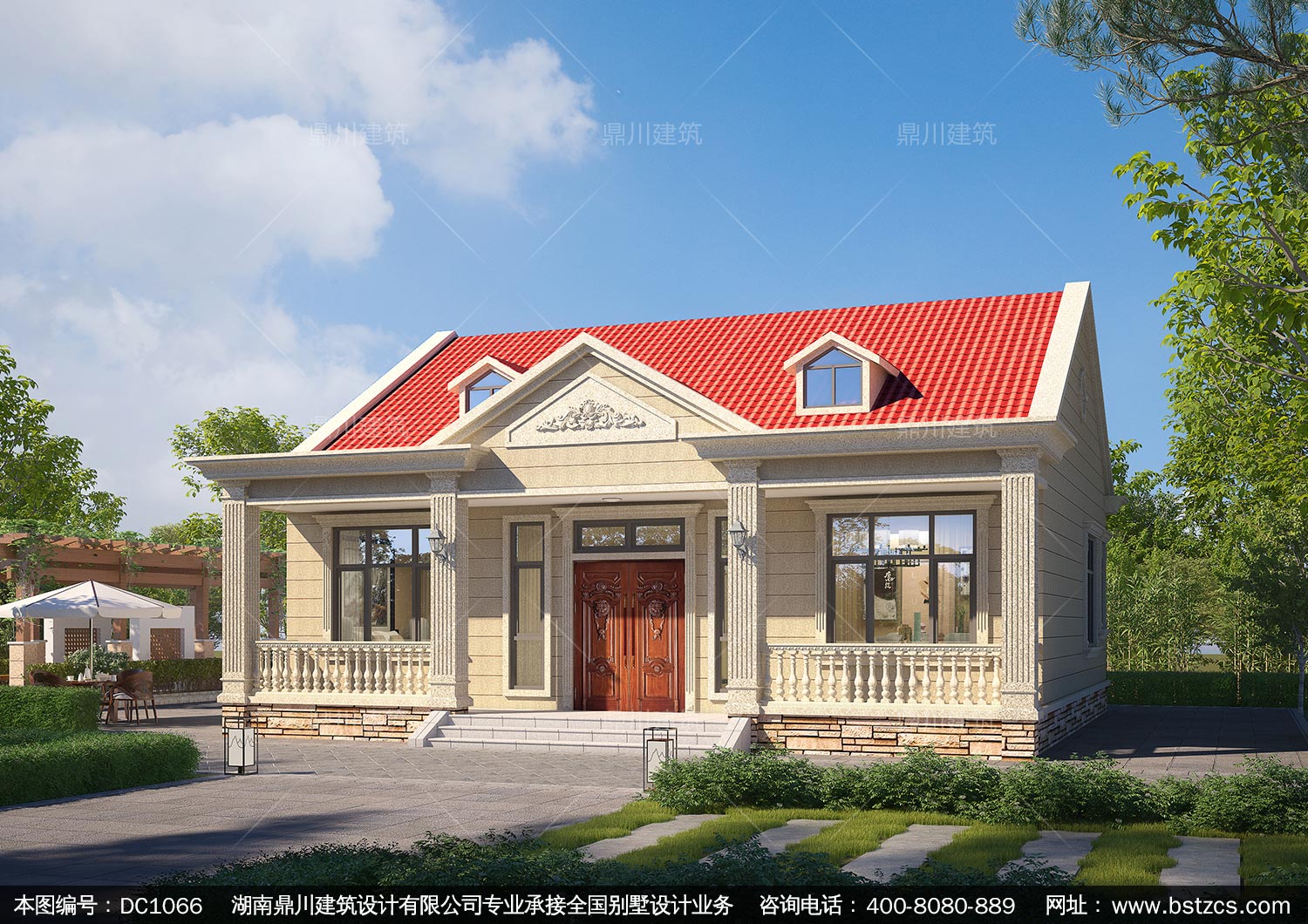 歐式一層帶堂屋別墅圖紙及外觀效果圖_農(nóng)村自建別墅設(shè)計,鼎川建筑