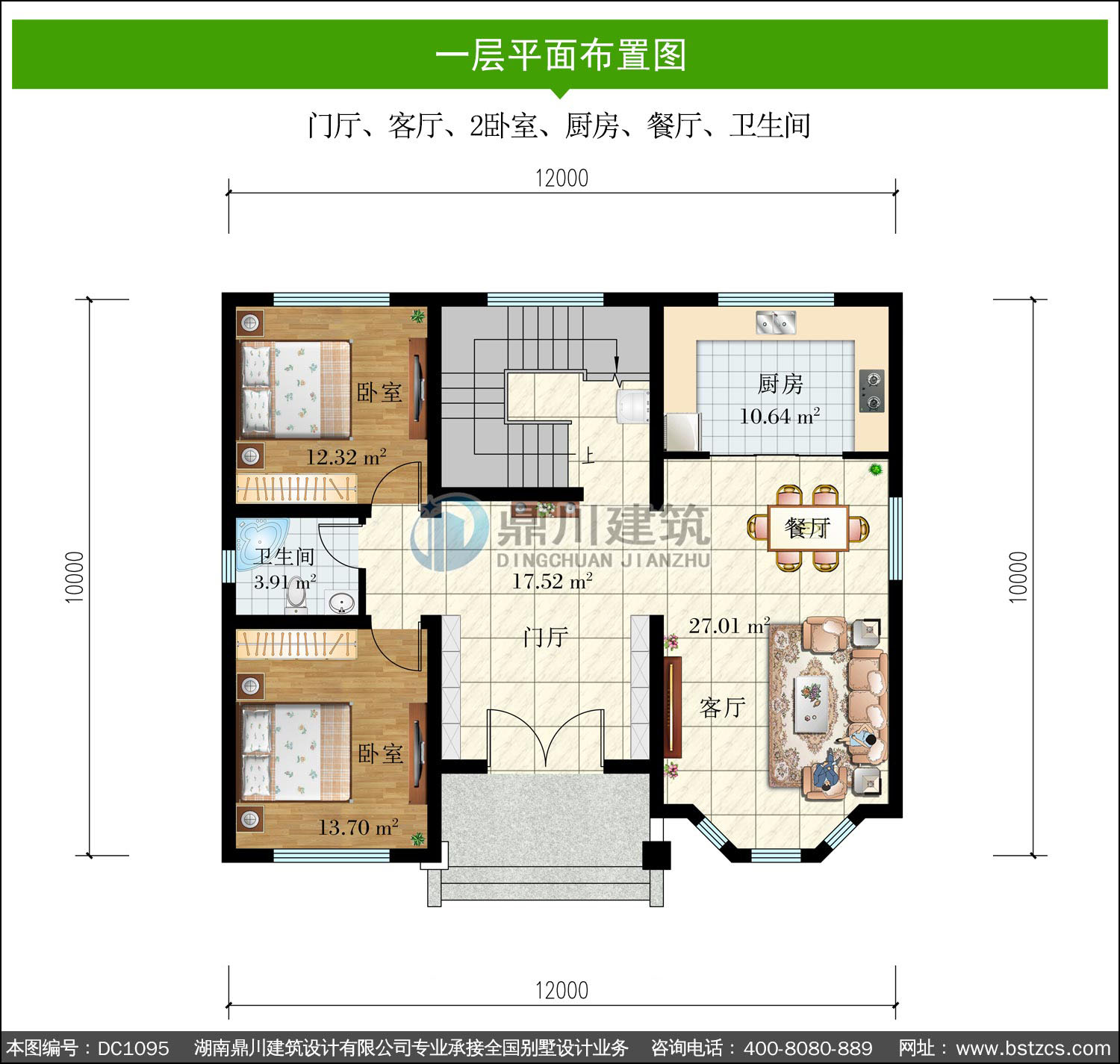 一 層: 門廳、客廳、2臥室、廚房、餐廳、衛(wèi)生間