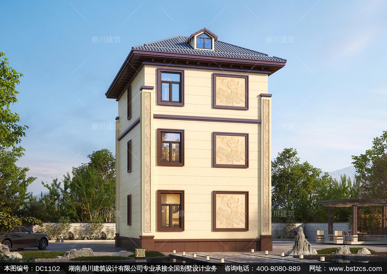 新中式三層小戶型別墅圖紙及效果圖_農村自建別墅設計,鼎川建筑