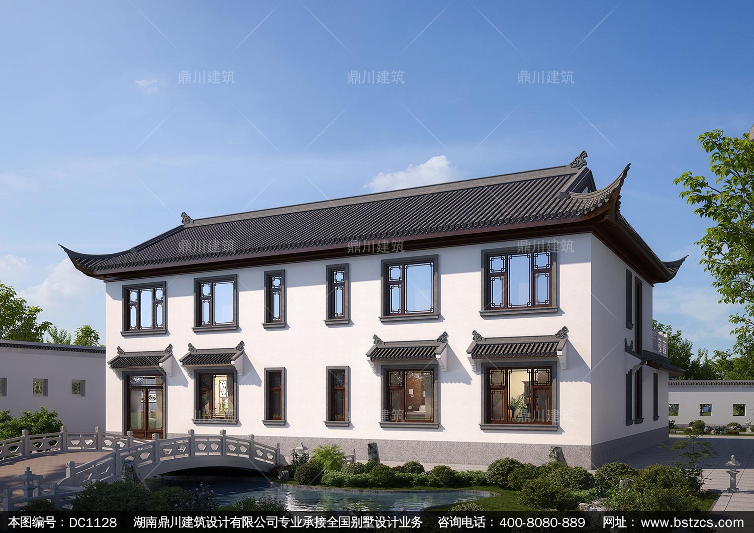 二層中式別墅設(shè)計圖紙及外觀效果圖_新農(nóng)村三合院設(shè)計,鼎川建筑