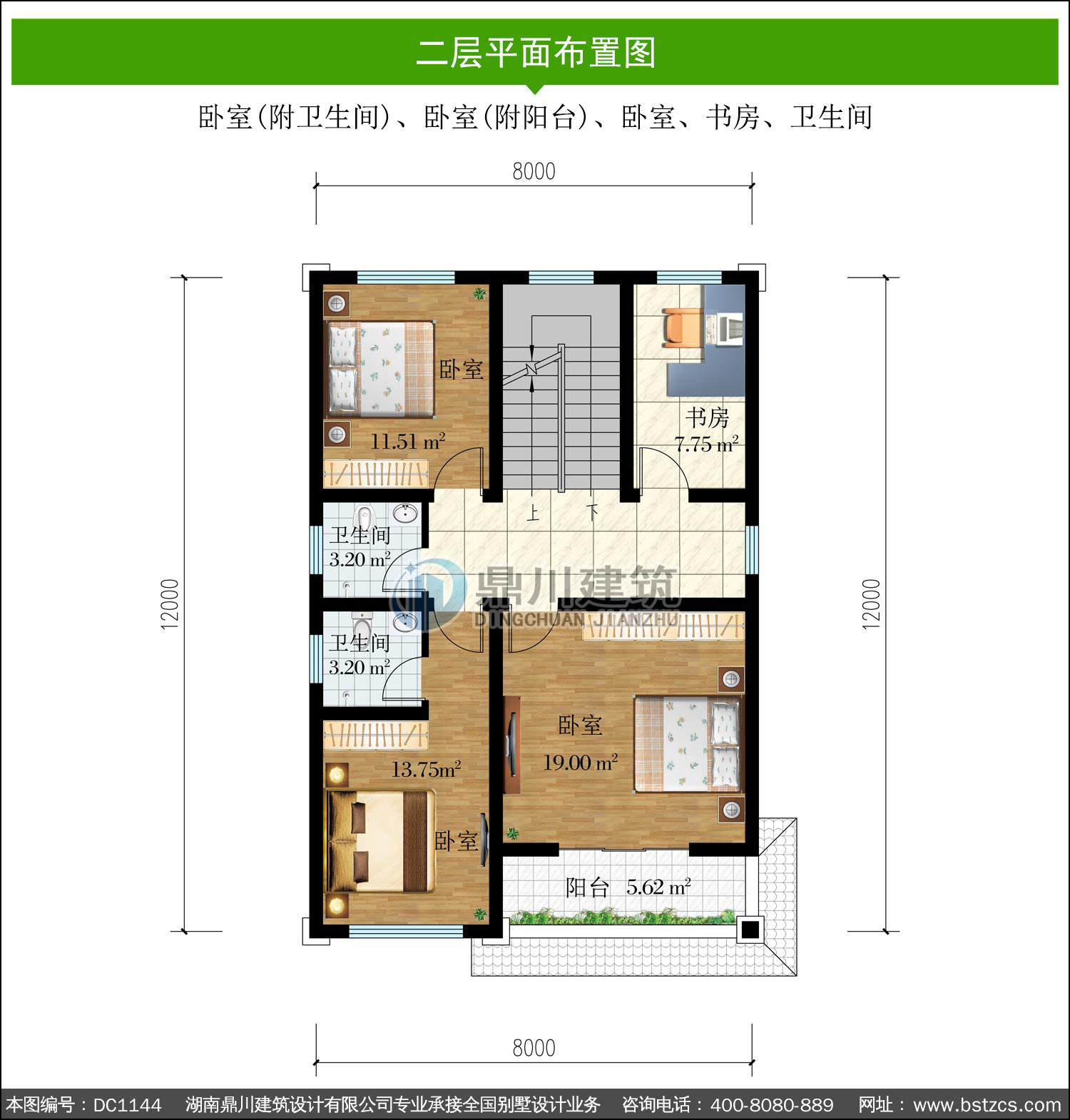 | 二 層: | 臥室(附衛(wèi)生間)、臥室(附陽臺(tái))、臥室、書房、衛(wèi)生間 | |||