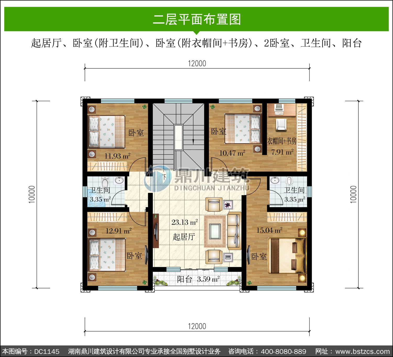 | 二 層: | 起居廳、臥室(附衛(wèi)生間)、臥室(附衣帽間+書房)、2臥室、衛(wèi)生間、陽臺 | |||