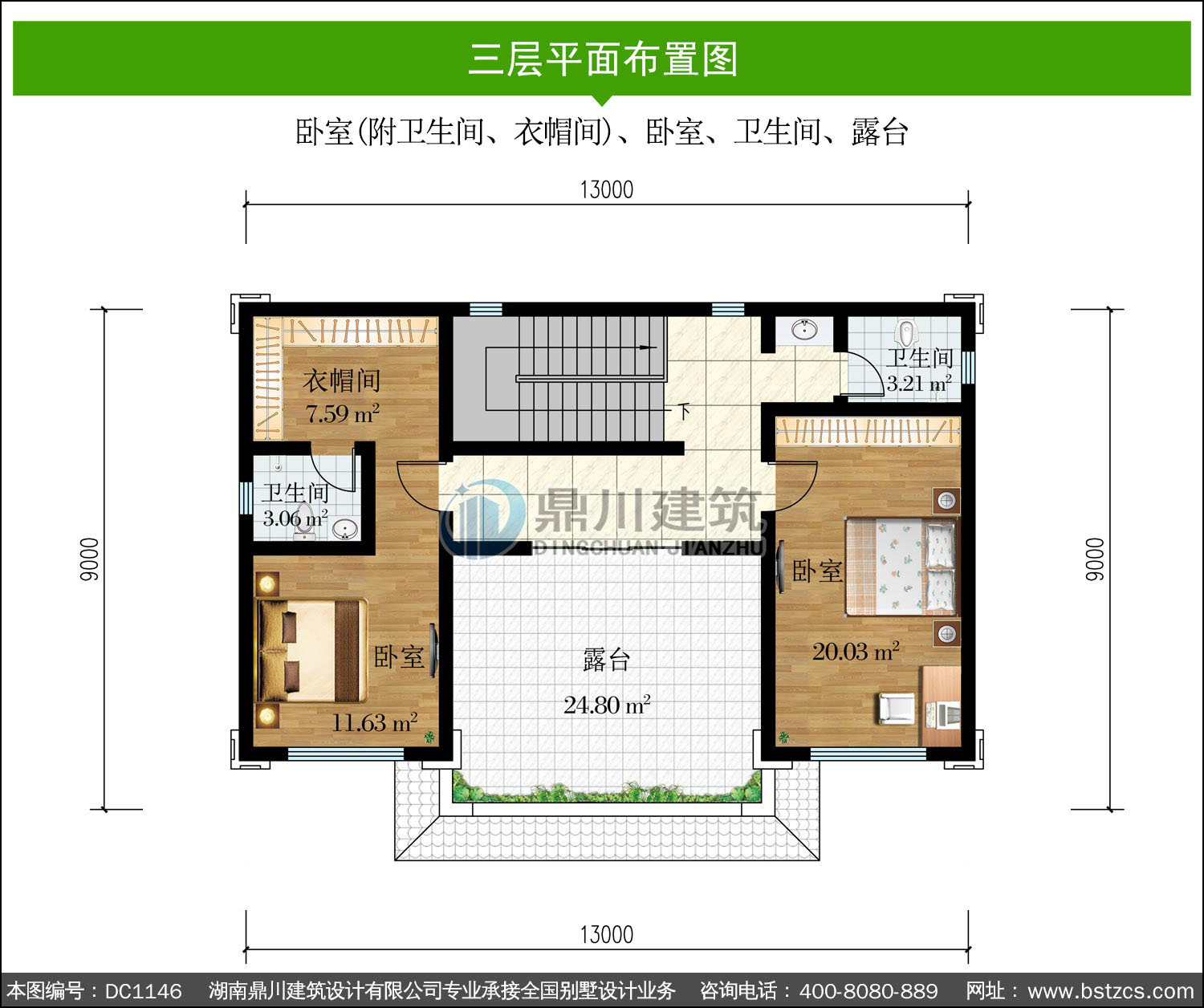 新中式三層帶露臺別墅施工圖紙及效果圖_農村自建別墅設計,鼎川建筑