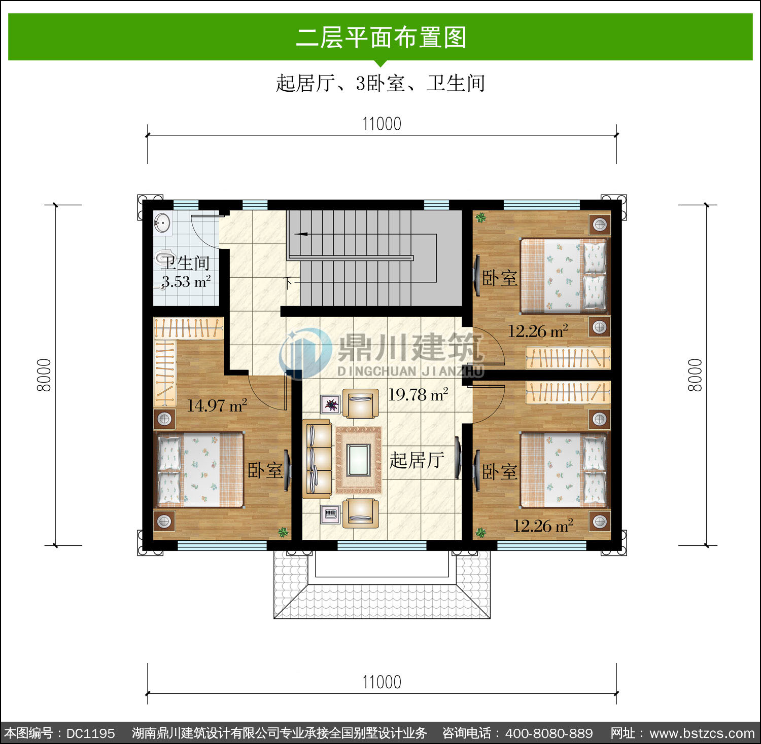 | 二 層: | 起居廳、3臥室、衛(wèi)生間 | |||