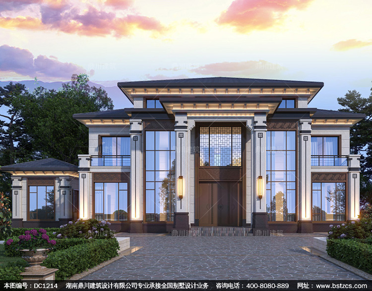 大氣新中式二層別墅效果圖及全套施工圖紙_農(nóng)村自建房設計,鼎川