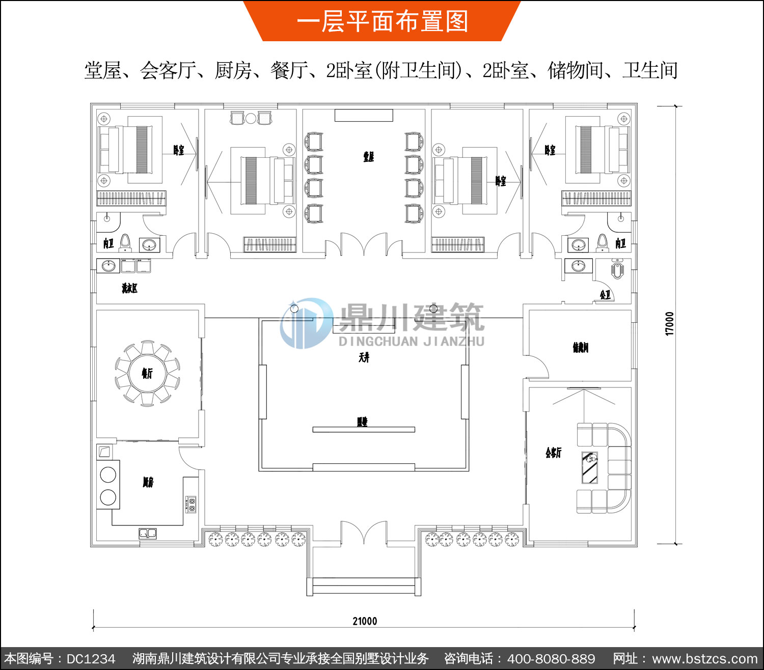 | 一 層: | 堂屋、會(huì)客廳、廚房、餐廳、2臥室(附衛(wèi)生間)、2臥室、儲物間、衛(wèi)生間 | |||