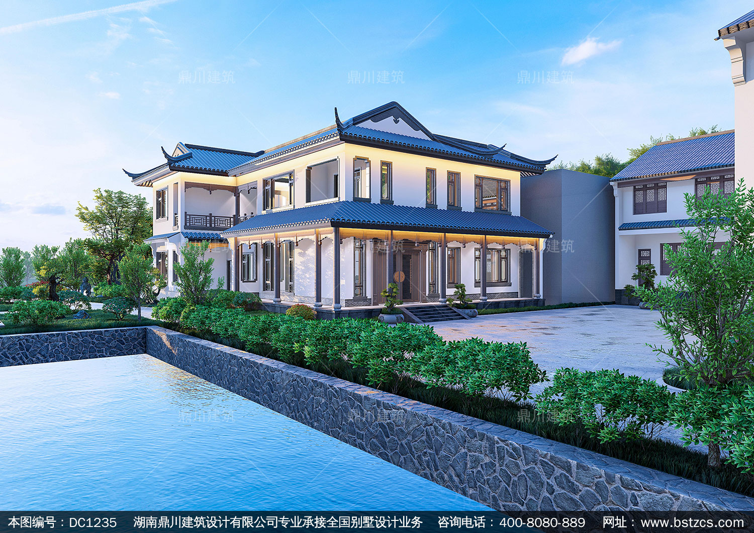 新中式二層別墅施工圖紙及效果圖_農(nóng)村自建別墅設計,鼎川建筑