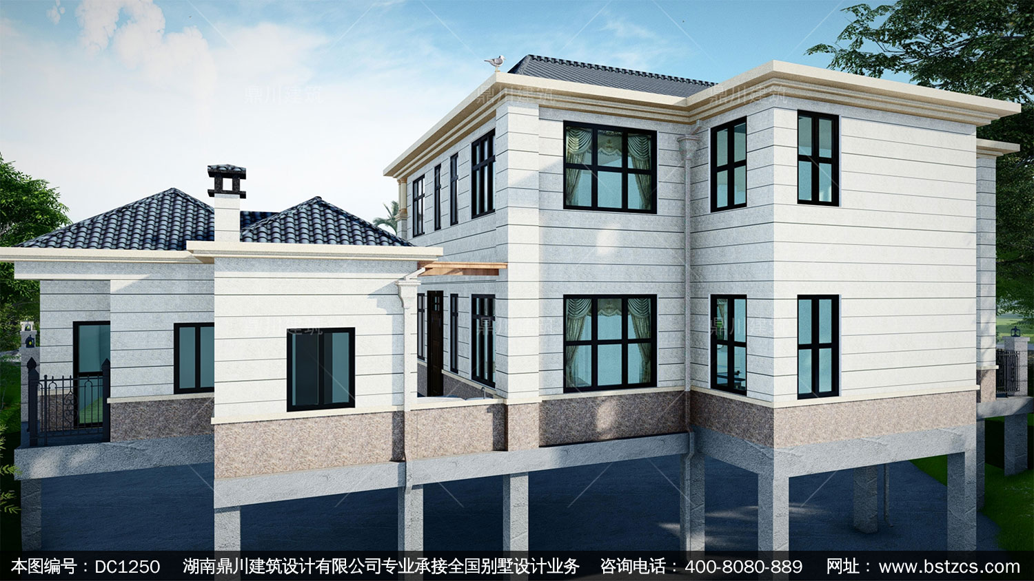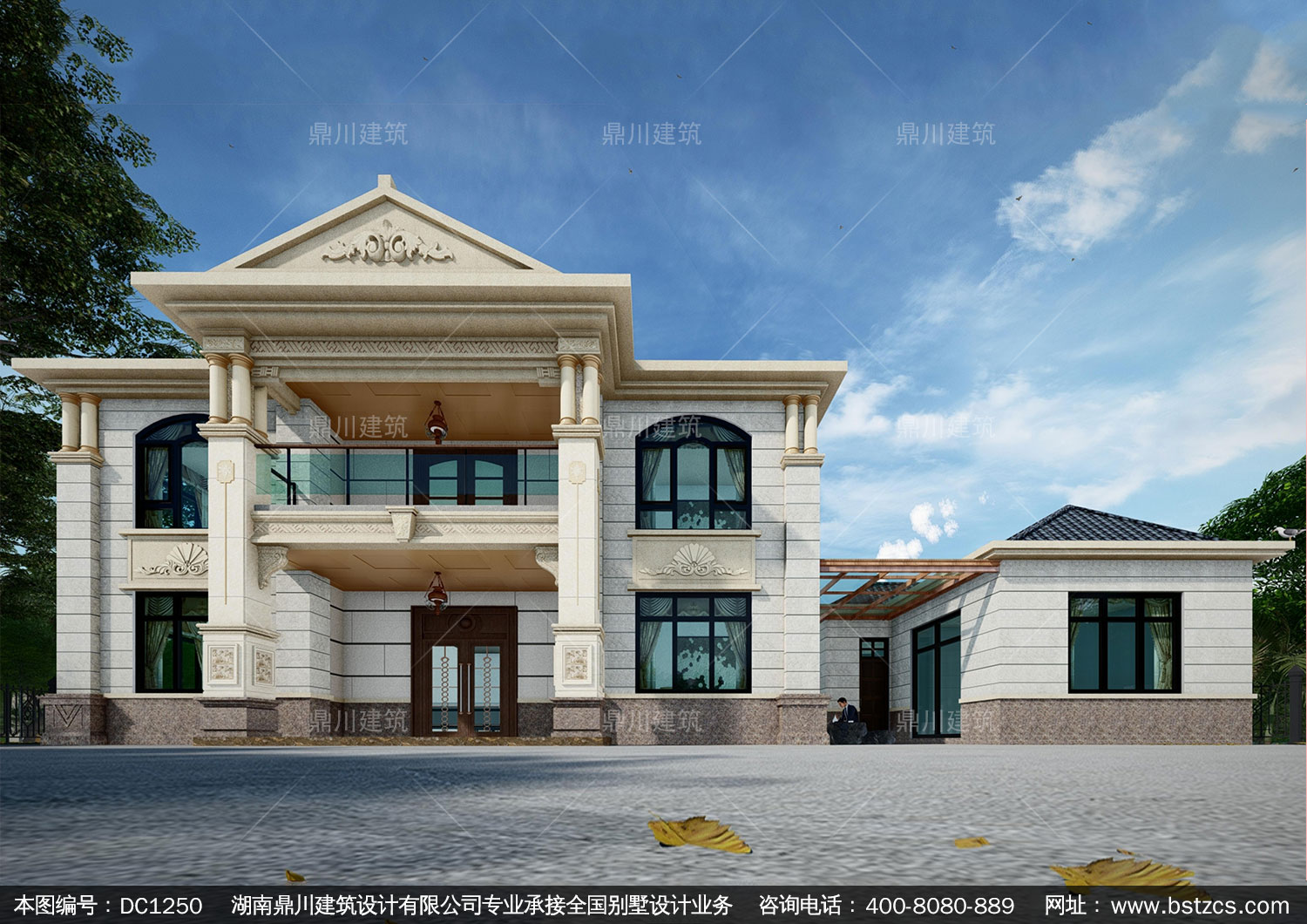 歐式二層帶偏房別墅施工圖紙及效果圖_農(nóng)村自建別墅設(shè)計,鼎川建筑