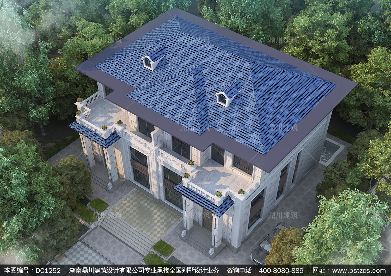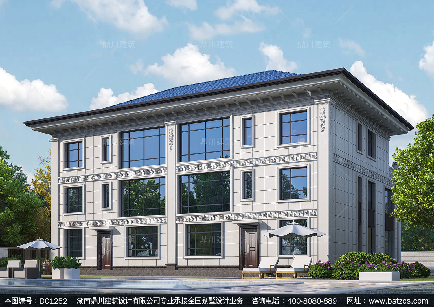 大氣新中式三層雙拼別墅圖紙及效果圖_農(nóng)村自建別墅設計,鼎川建