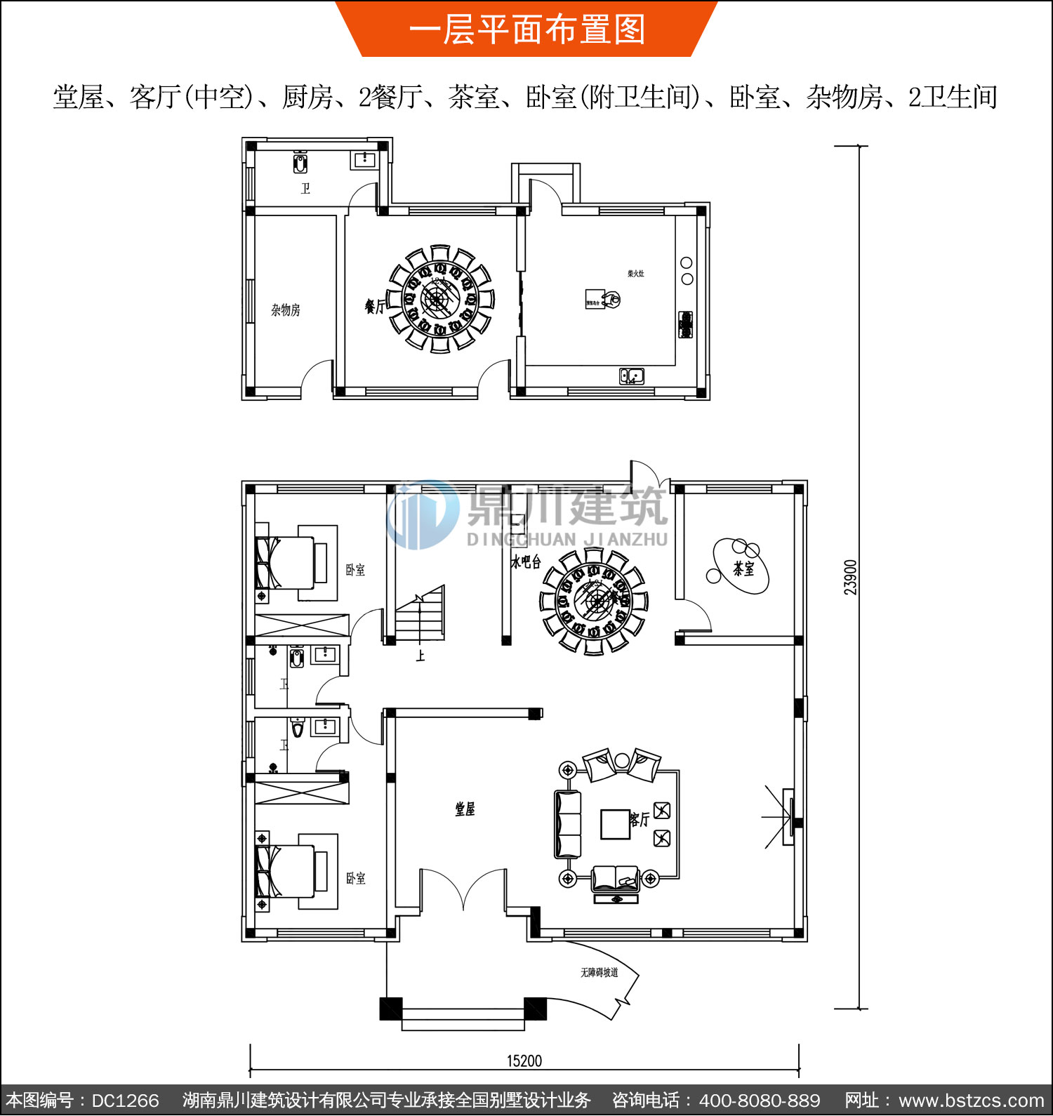 | 一 層: | 堂屋、客廳(中空)、廚房、2餐廳、茶室、臥室(附衛(wèi)生間)、臥室、雜物房、2衛(wèi)生間 | |||