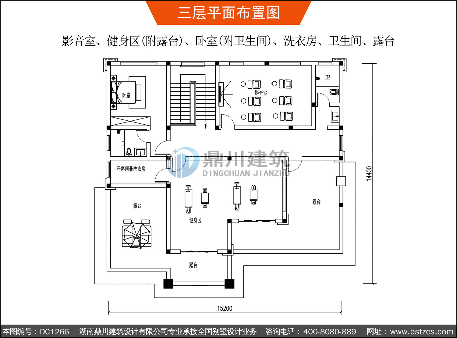 | 三 層: | 影音室、健身區(qū)(附露臺)、臥室(附衛(wèi)生間)、洗衣房、衛(wèi)生間、露臺 | |||