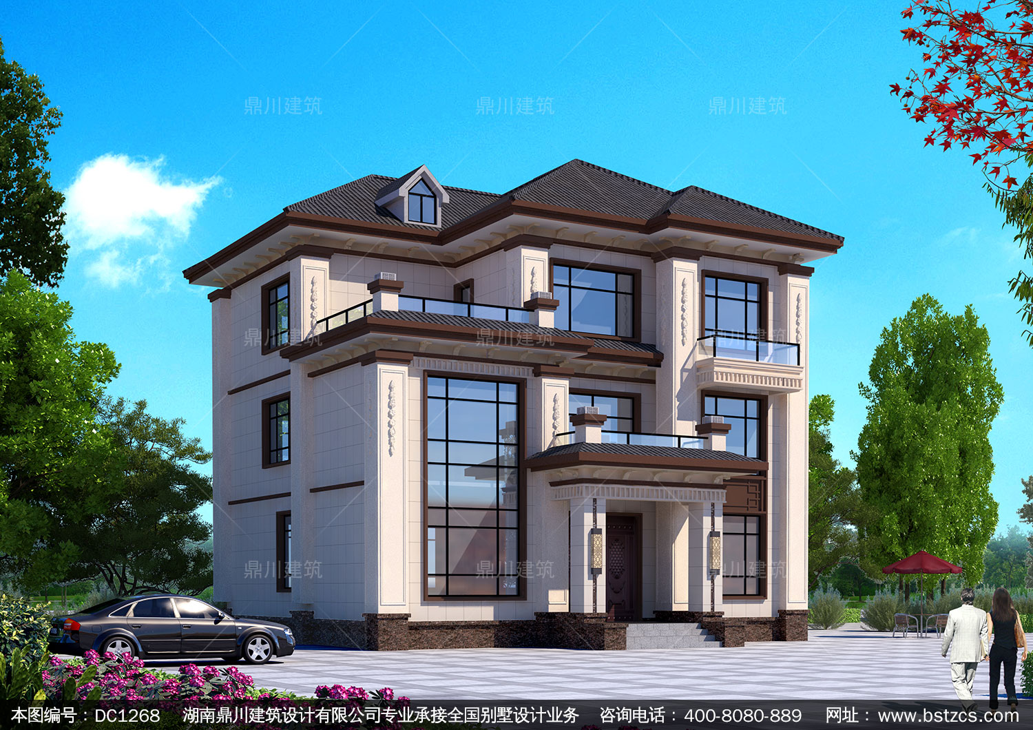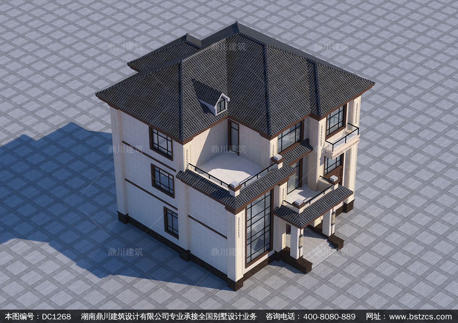 新中式三層別墅施工圖紙及效果圖_農(nóng)村自建別墅設(shè)計,鼎川建筑