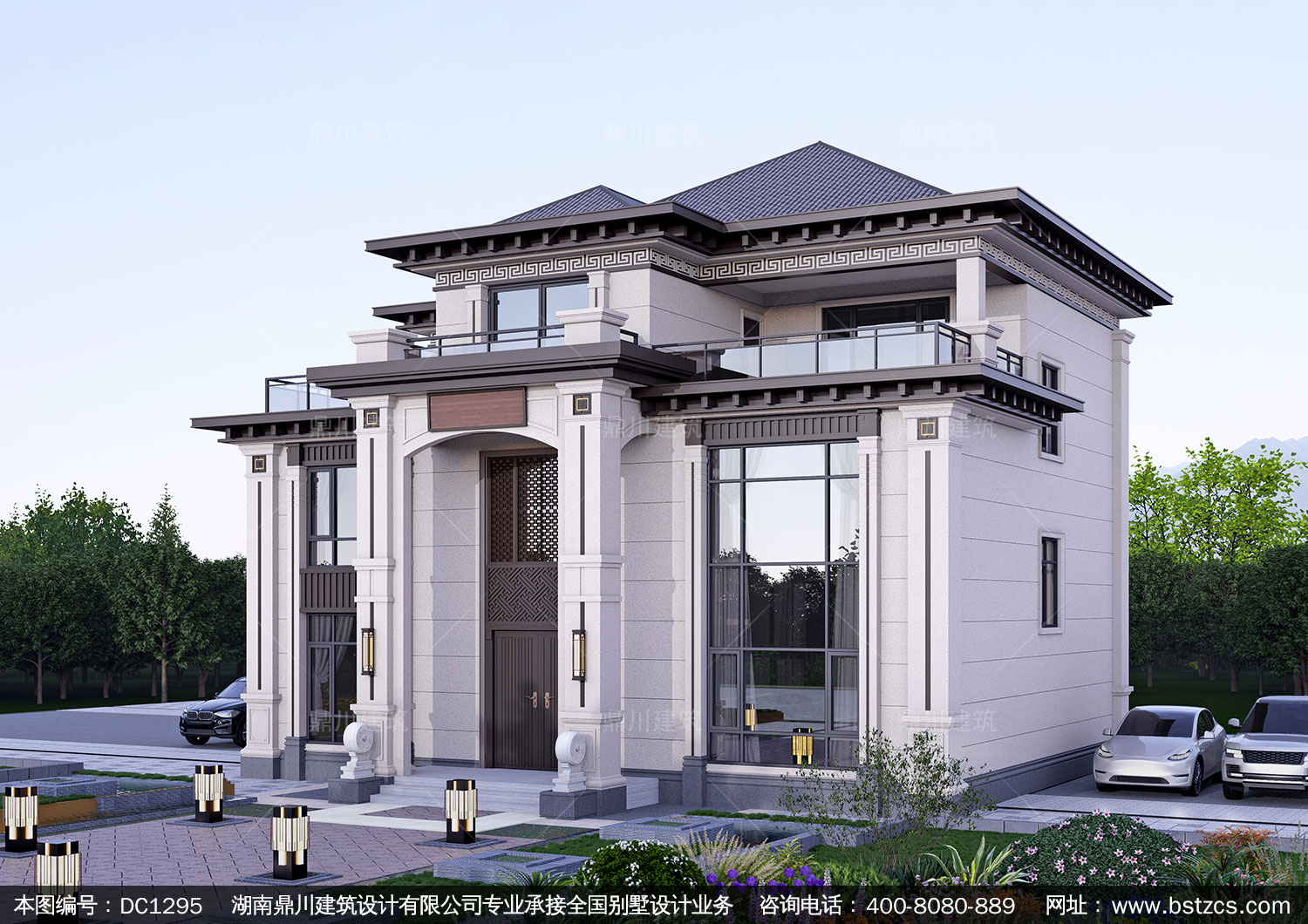 新中式三層復(fù)式別墅施工圖紙及效果圖_農(nóng)村自建別墅設(shè)計(jì),鼎川建筑