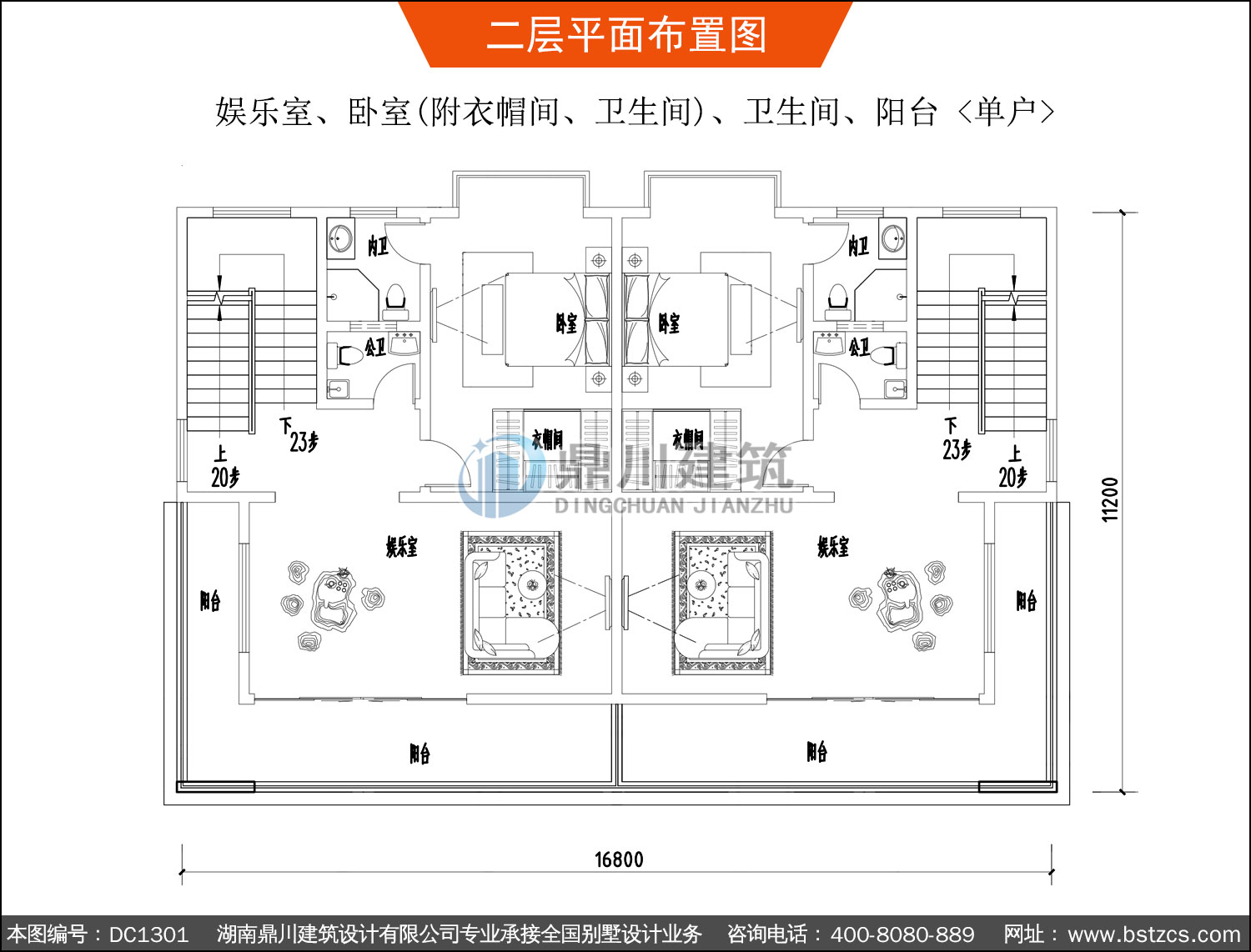 二 層: 娛樂室、臥室(附衣帽間、衛(wèi)生間)、衛(wèi)生間、陽臺(tái) <單戶>