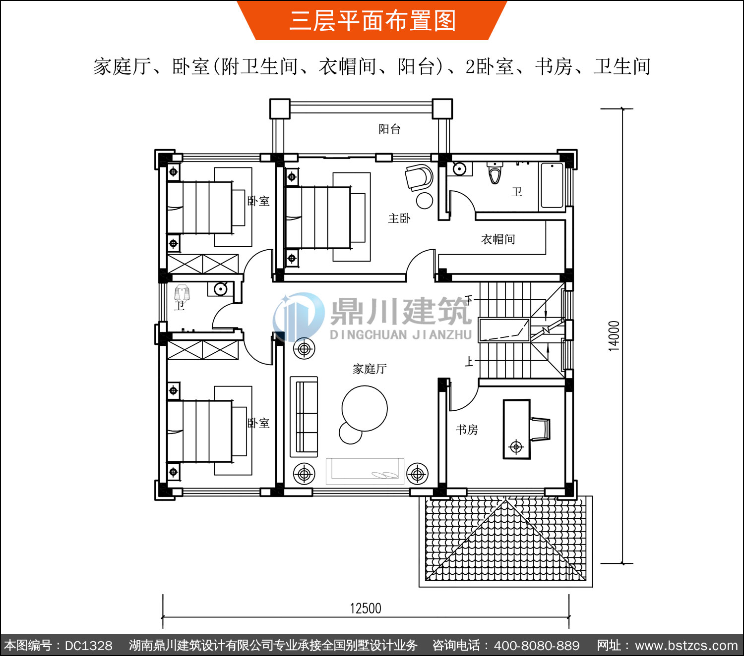 | 三 層: | 家庭廳、臥室(附衛(wèi)生間、衣帽間、陽臺(tái))、2臥室、書房、衛(wèi)生間 | |||