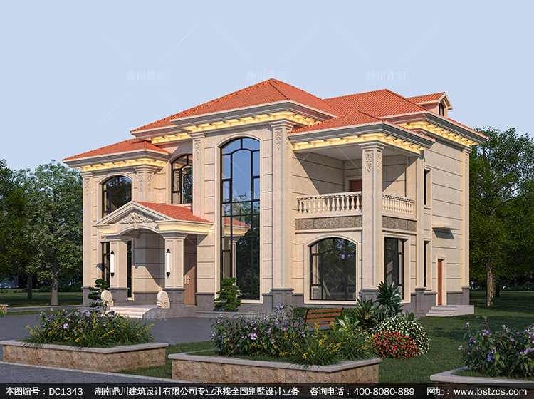 歐式二層復(fù)式別墅施工圖紙及效果圖_農(nóng)村自建別墅設(shè)計,鼎川建筑