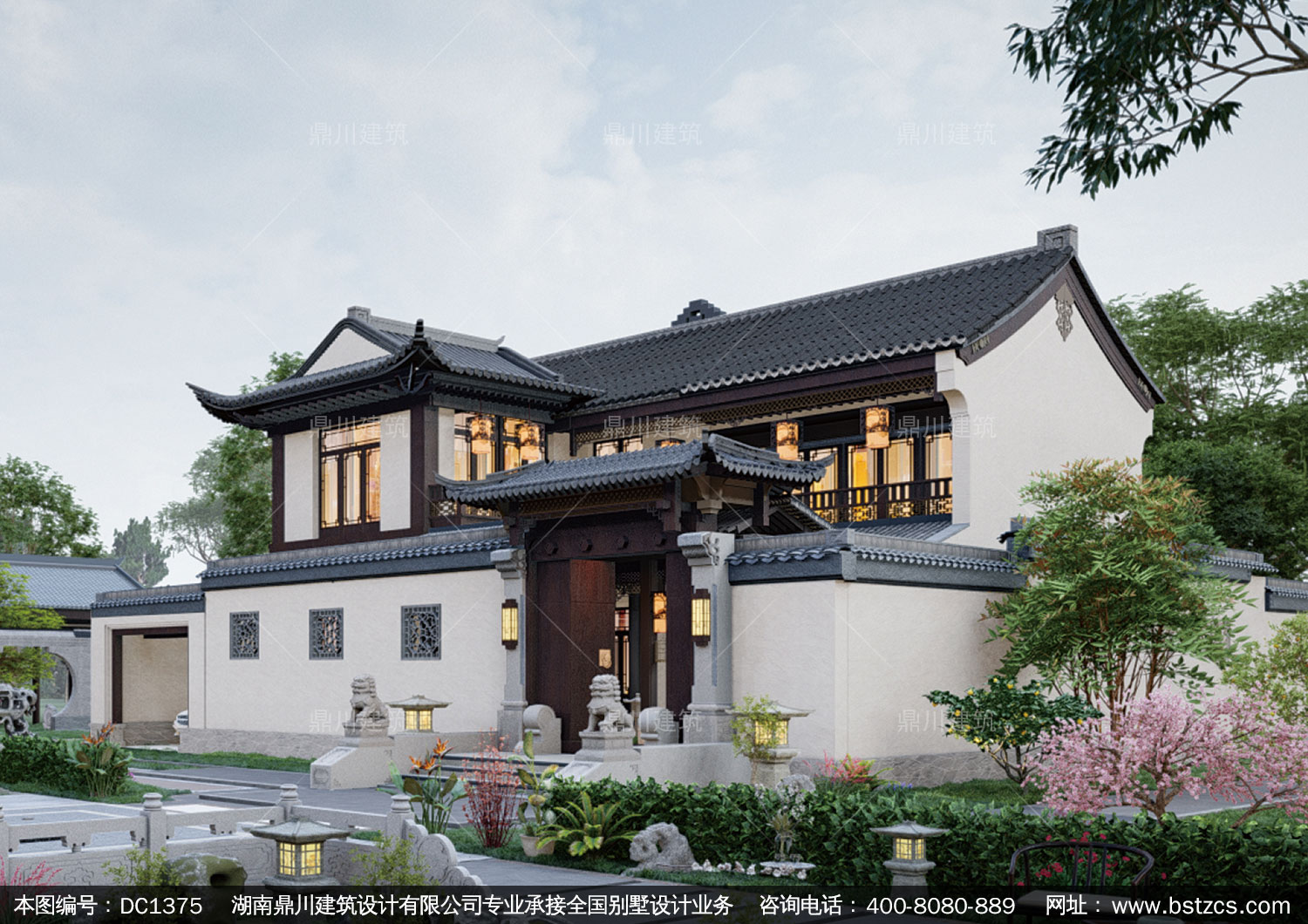 中式二層別墅效果圖及施工圖紙_農(nóng)村自建別墅設(shè)計(jì),鼎川建筑