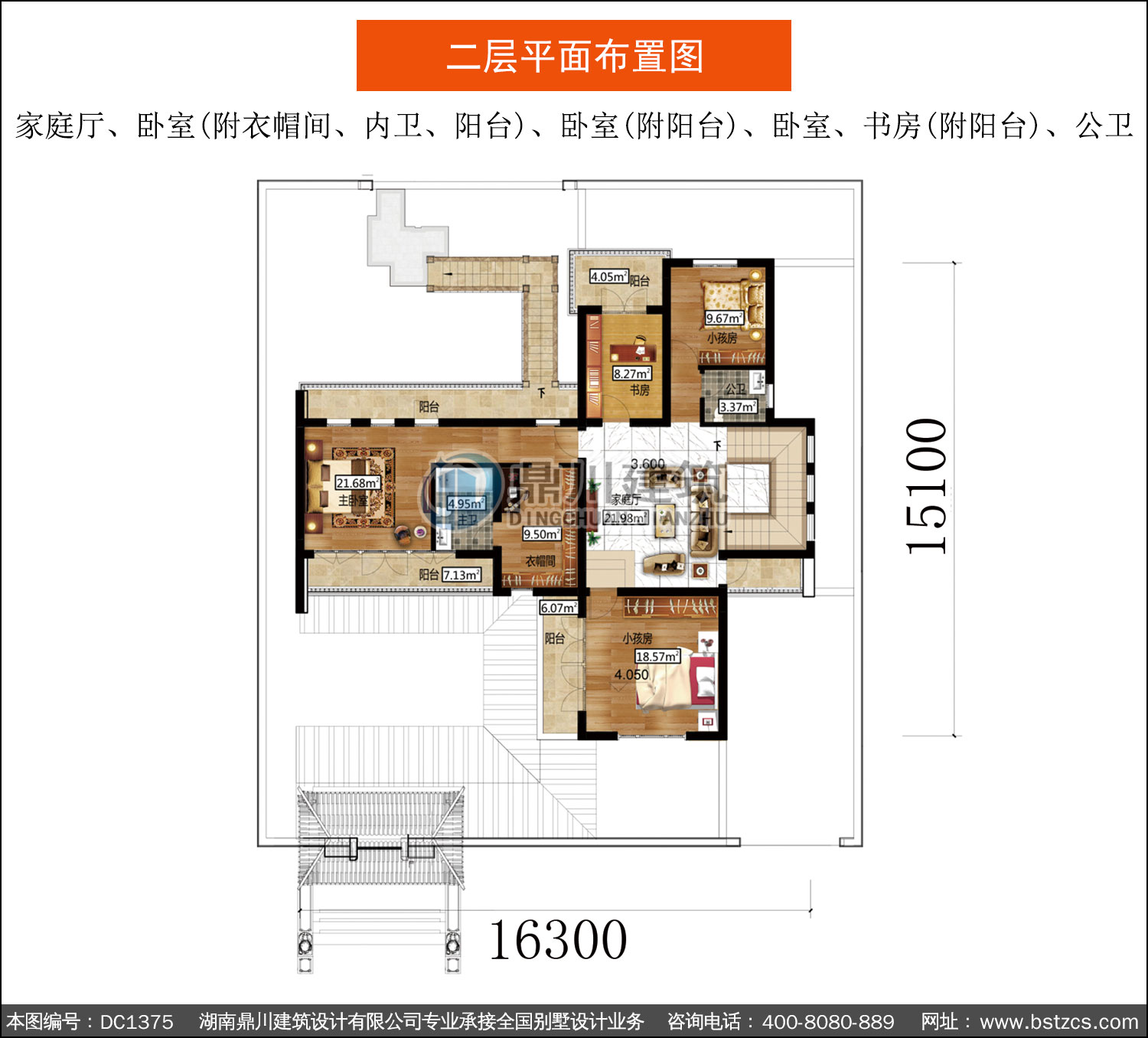 二 層: 家庭廳、臥室(附衣帽間、內(nèi)衛(wèi)、陽(yáng)臺(tái))、臥室(附陽(yáng)臺(tái))、臥室、書房(附陽(yáng)臺(tái))、公衛(wèi)